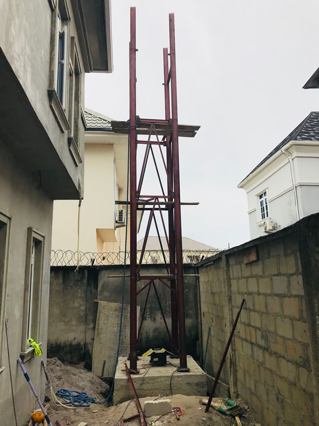 Construction of 9meters water tank scaffolding at Greenland estate, Sangotedo Lagos