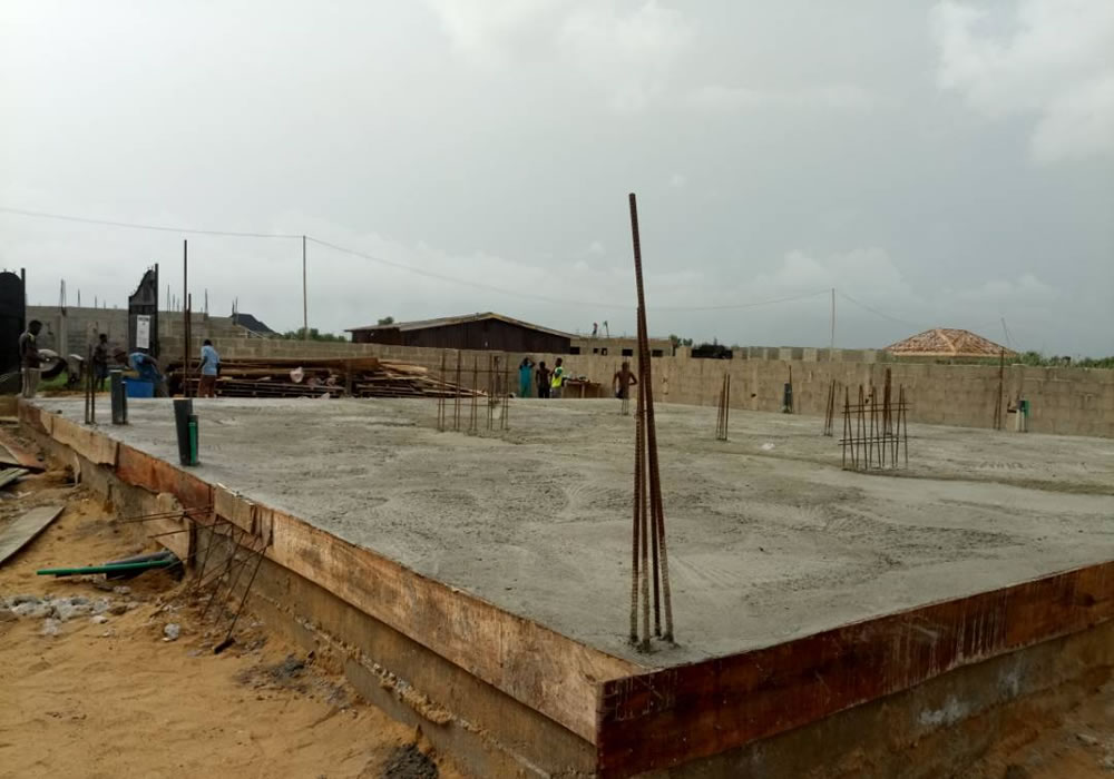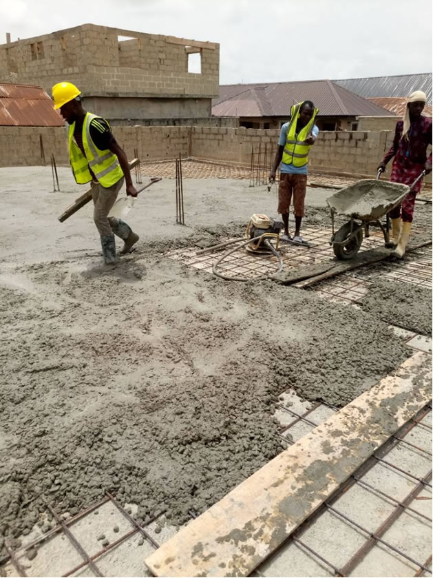 Casting of the ground floor slab for the ongoing construction of twins duplex
