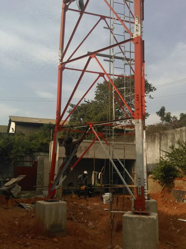 Construction of 35meters 3legged communication mast tower at Toyota Nigeria Ltd, Isolo Lagos.